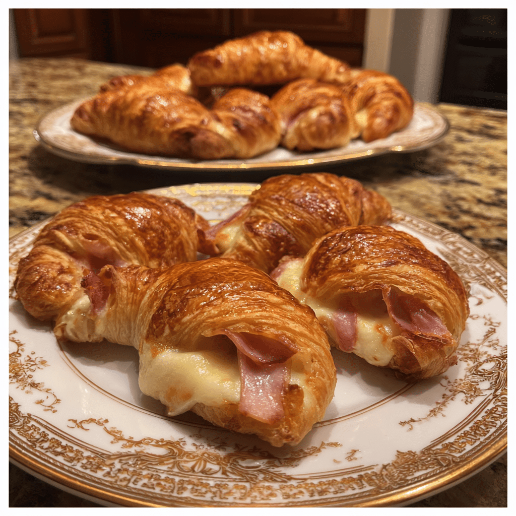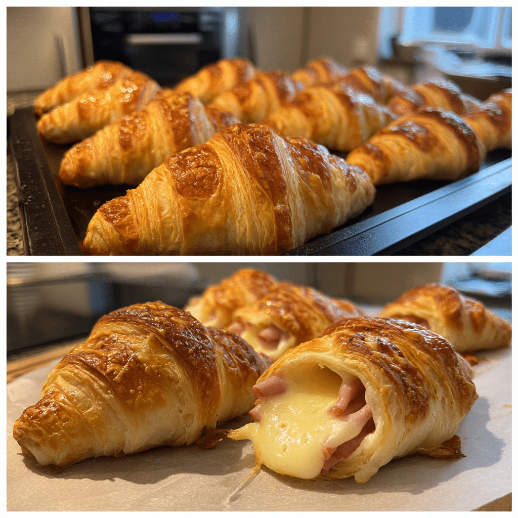Warm, buttery croissants filled with savory ham and melty cheese, then baked until golden—perfect for breakfast, brunch, or an easy satisfying snack.