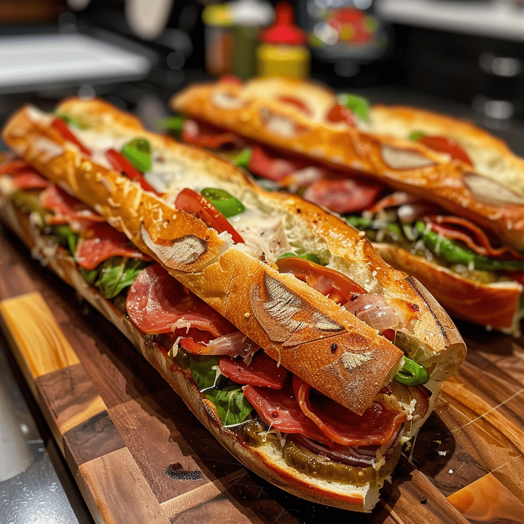 Italian Sausage Version – Use cooked Italian sausage slices instead of deli meats for a hearty, rustic sandwich.