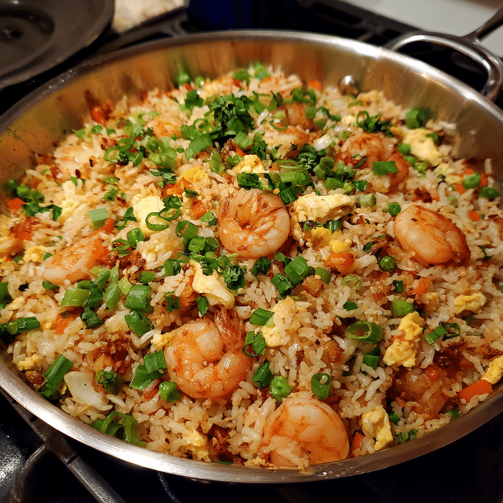 - Add cooked rice, green onions, and protein back to the pan. Stir-fry for 2–3 minutes.