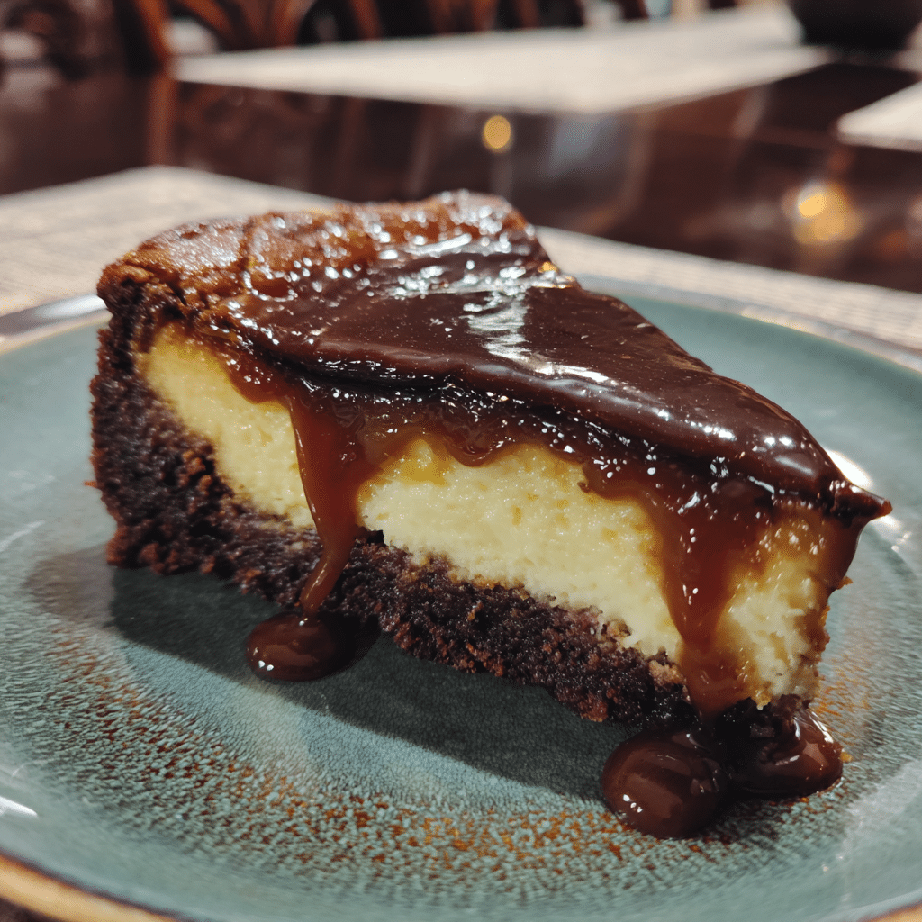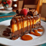 A decadent dessert combining fudgy brownies, creamy cheesecake, and luscious caramel sauce — the ultimate indulgence for dessert lovers.