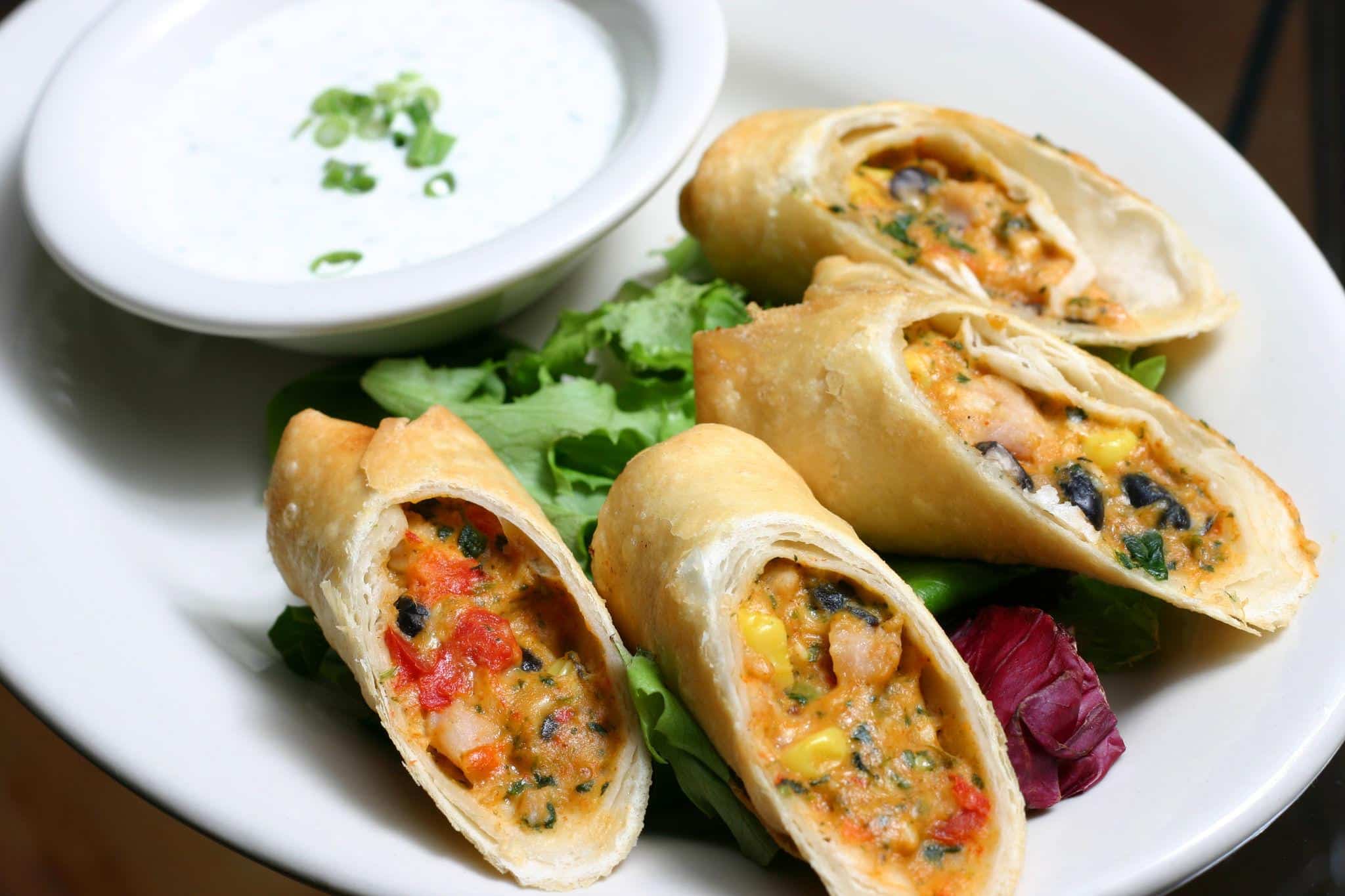 Chili’s Southwest Eggrolls are crispy, golden tortillas filled with a flavorful mixture of chicken, black beans, corn, peppers, spinach, and melted cheese, served with a creamy dipping sauce.