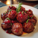 Sweet and tangy cranberry meatballs simmered in a rich cranberry sauce, perfect as a holiday appetizer or easy party dish.