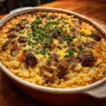 Creamy Beef & Mushroom Rice Bake is the kind of hearty, oven-baked meal that feels like home. It combines tender beef, earthy mushrooms, fluffy rice, and a rich, creamy sauce into one satisfying dish that is perfect for busy weeknights or relaxed family dinners. I started making this recipe when I needed something filling that could be prepped ahead and baked while I focused on other tasks. The result was a cozy, reliable meal that everyone enjoyed. The beef brings savory depth, the mushrooms add balance and umami, and the rice absorbs all the flavors as it bakes. What makes this dish especially appealing is its simplicity. Everything comes together in one baking dish, minimizing cleanup while maximizing comfort. It reheats beautifully, making it ideal for leftovers, and it is flexible enough to adapt with different seasonings or add-ins depending on what you have on hand.