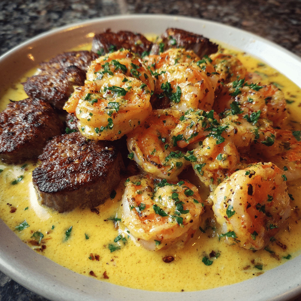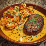 Creamy Cajun Shrimp Steak is a flavorful dish combining tender steaks and juicy shrimp, all covered in a rich, creamy Cajun sauce. Perfect for a delicious and indulgent meal, with a spicy kick and savory depth.
