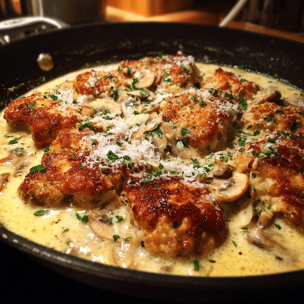 This creamy garlic parmesan chicken recipe is the perfect blend of comfort and sophistication. With its tender chicken, silky sauce, and robust garlic-parmesan flavor, it is sure to become a family favorite. Easy enough for weeknights yet elegant enough for entertaining, this dish is versatile and customizable. Whether you pair it with pasta, rice, or vegetables, it delivers a satisfying meal every time. I found that adding mushrooms gave it an earthy richness, while a splash of white wine elevated the sauce beautifully. Try your own twist and enjoy this comforting dish at your table.