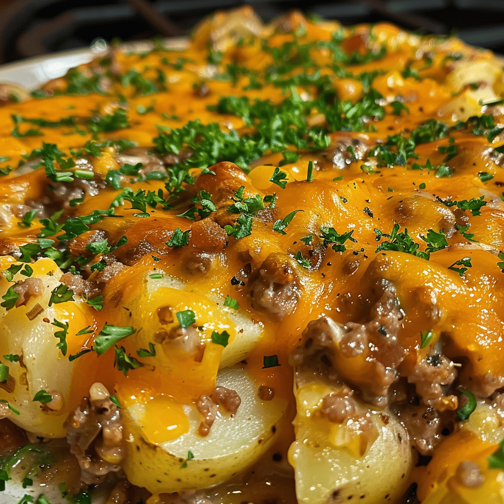 Crockpot Hamburger Potato Casserole is a hearty, comforting dish made with layers of seasoned ground beef, tender potatoes, onions, and a creamy cheese sauce — an easy, family-friendly slow cooker meal perfect for busy weeknights.