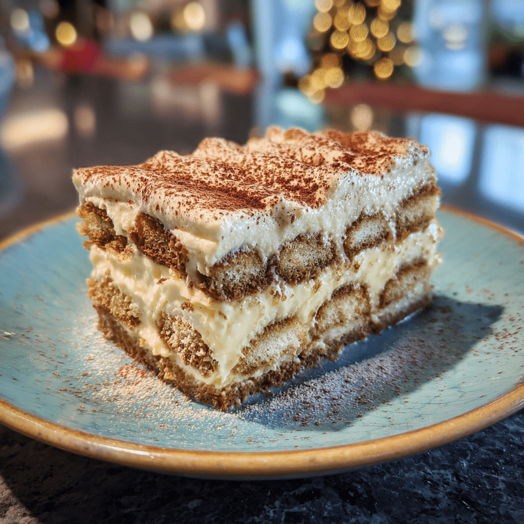 For individual servings, assemble the tiramisu in glasses or jars for an elegant presentation. Chocolate shavings or crushed gingerbread cookies also make excellent festive toppings.