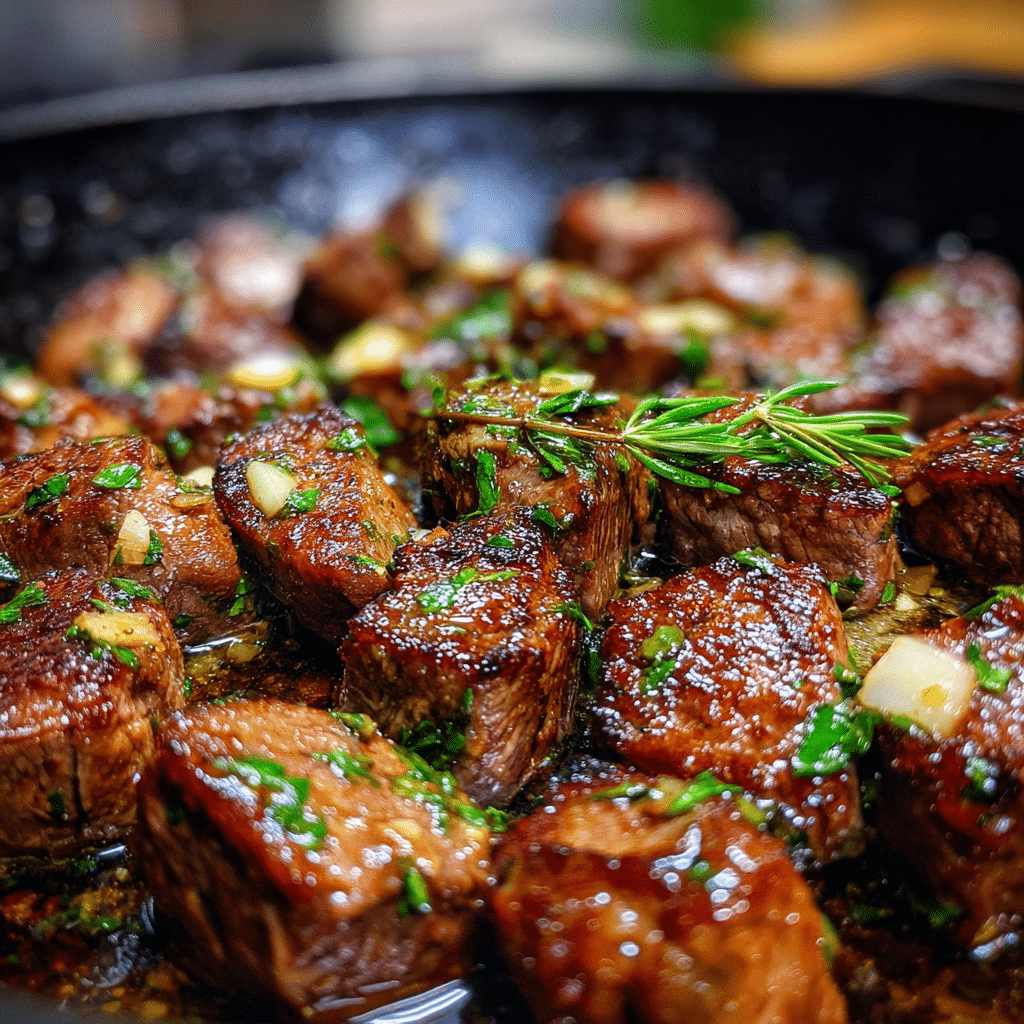 Juicy, tender steak bites seared to perfection and tossed in a rich garlic butter sauce for a quick and flavorful meal or appetizer.