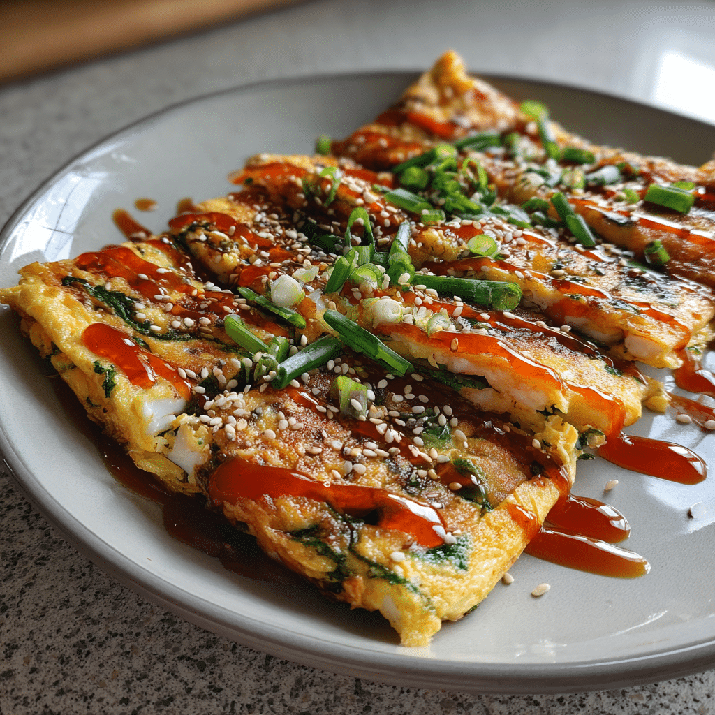 Gyeran mari is a Korean rolled omelette that’s beautifully simple yet surprisingly versatile. Made by whisking eggs with a few seasonings and layering them into a rolled shape, this dish is often served as a side (banchan) in Korean meals or tucked into lunchboxes. Unlike a Western omelette, gyeran mari is rolled into neat layers, making it visually appealing as well as delicious. The texture is soft, slightly chewy, and full of flavor. I tried this recipe once with finely chopped green onions and carrots added to the eggs, and it gave the omelette a fresh crunch that paired perfectly with its delicate flavor. Whether enjoyed warm at breakfast or cold in a lunchbox, gyeran mari is an easy, healthy dish you’ll find yourself making often.