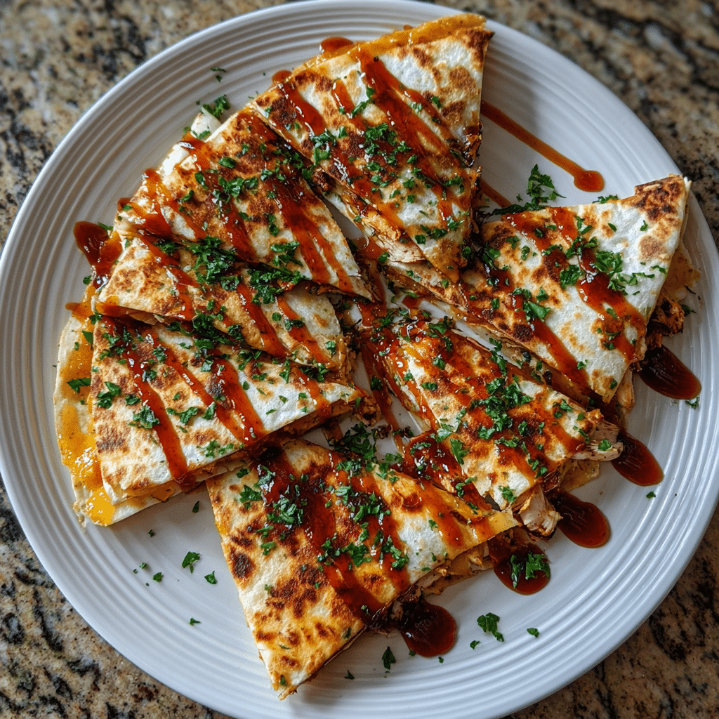 Crispy, cheesy quesadillas filled with smoky BBQ chicken and finished with a sweet-and-spicy hot honey drizzle for the perfect balance of heat and flavor.