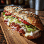 The Italian Grinder Salad Sandwich is a hearty, flavor-packed meal that combines the best of two worlds: a traditional Italian sub and a creamy, tangy grinder salad. Piled high with layers of deli meats, cheese, crisp vegetables, and a zesty dressing, this sandwich is anything but ordinary. The grinder salad—made with lettuce, onions, banana peppers, and a creamy mayo-based dressing—adds crunch and bold flavor that perfectly complements the savory meats. Served on crusty Italian bread, every bite delivers a satisfying balance of textures and tastes. It is an excellent choice for family dinners, game-day spreads, or weekend lunches when you want something filling yet exciting. This recipe not only satisfies cravings but also allows for flexibility, as you can easily customize the meats, cheeses, and toppings. Whether enjoyed warm or cold, the Italian Grinder Salad Sandwich will quickly become a favorite at your table.