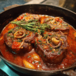 Italian Osso Buco is a true celebration of slow cooking, transforming simple ingredients into an elegant, deeply flavorful dish. Traditionally made with cross-cut veal shanks, this classic Italian recipe is known for its rich sauce, tender meat, and the prized marrow at the center of each bone. I first made Osso Buco for a special weekend dinner, and the aroma alone convinced me it was worth the time. As the shanks gently braise, the meat becomes meltingly tender while the sauce develops incredible depth. It is comforting yet refined, making it perfect for family gatherings or impressive dinner parties. Despite its restaurant-worthy reputation, the process is straightforward and forgiving. Served with risotto, polenta, or mashed potatoes, Italian Osso Buco delivers warmth, tradition, and unforgettable flavor in every bite.