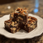 Kentucky Bourbon Pecan Fudge is a deeply indulgent dessert that blends classic fudge richness with warm Southern flavors. Smooth chocolate, toasted pecans, and a subtle hint of bourbon come together to create a confection that feels both luxurious and nostalgic. I first made this fudge as a holiday gift, and it quickly became the most requested treat on the table. The bourbon does not overpower; instead, it enhances the chocolate and brings a gentle warmth that lingers pleasantly. The pecans add texture and balance, preventing the fudge from feeling too dense. This recipe is perfect for special occasions, gifting, or whenever you want a dessert that feels a little elevated without being complicated. It requires minimal equipment, sets beautifully, and slices cleanly, making it ideal for make-ahead preparation. If you enjoy bold flavors wrapped in a classic format, this fudge delivers in every bite.