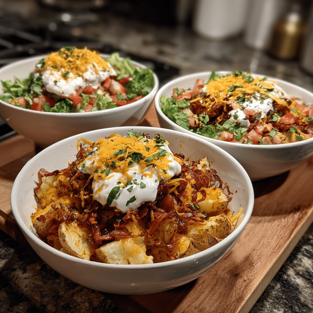 Loaded Sweet Potato Bowls – Use roasted sweet potatoes for a slightly sweet, earthy variation.
