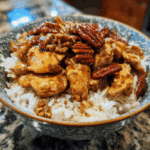 This Maple Bourbon Pecan Chicken is a sweet, savory, and smoky dish featuring juicy chicken coated in a sticky maple–bourbon glaze and topped with toasted pecans. It’s comforting, elegant, and bursting with fall-inspired flavor — perfect for weeknight dinners or entertaining.