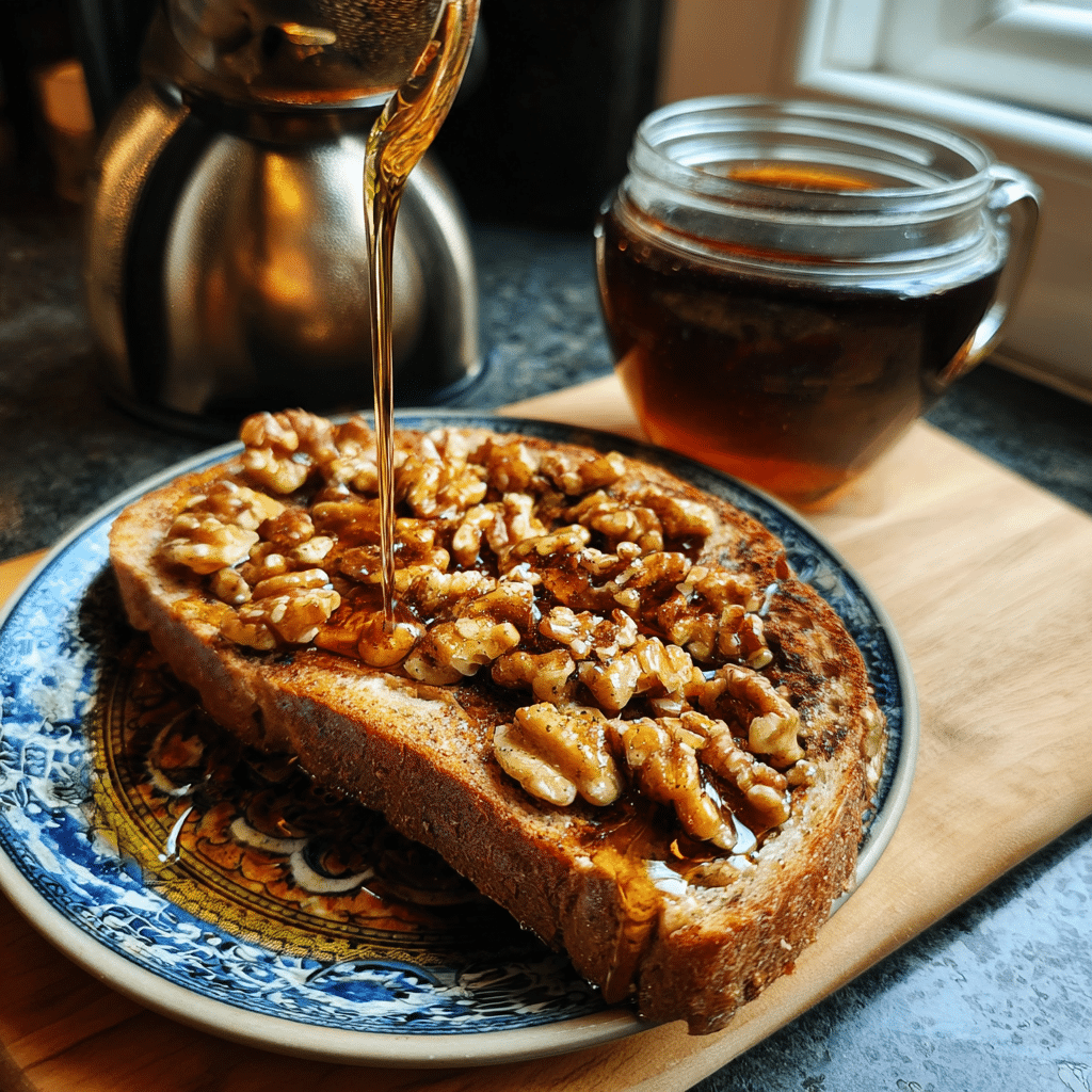 A warm, cozy toast-style bread sweetened with maple syrup and studded with crunchy walnuts—perfect for breakfast or an afternoon snack.