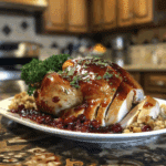 Perfect Cranberry Orange Glazed Turkey is the show-stopping centerpiece your Thanksgiving (or any holiday) table deserves. It’s tender, juicy, and infused with a balance of sweet citrus and tart cranberry flavor that will leave your guests in awe. The glaze caramelizes beautifully in the oven, giving the turkey a gorgeous golden-red sheen and irresistible aroma. I once brushed extra glaze during the final minutes of roasting, and it created the most flavorful, sticky-sweet crust I’ve ever tasted. Whether you’re hosting a grand feast or a cozy family dinner, this turkey delivers elegance, flavor, and that unforgettable “wow” moment.
