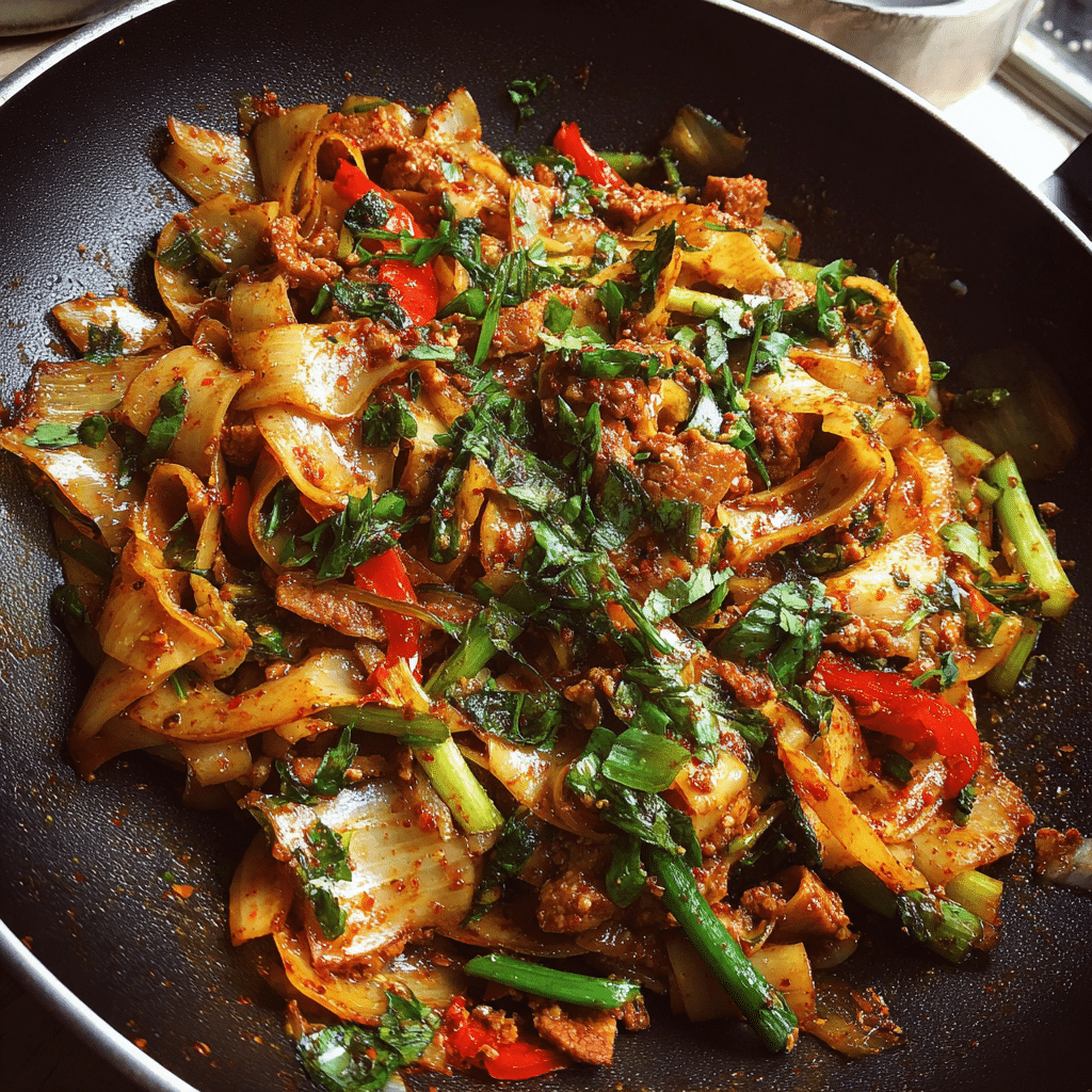 A quick and flavorful version of Thai Drunken Noodles (Pad Kee Mao) — spicy, garlicky, and bursting with bold street-style flavors, ready in just 20 minutes.
