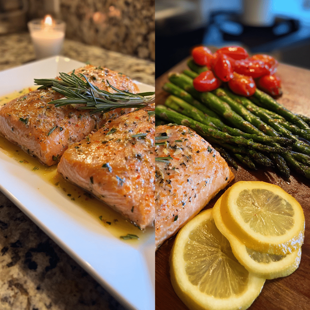 Fresh herbs (dill, parsley, or thyme) – These provide freshness and color, complementing the salmon’s natural oils.